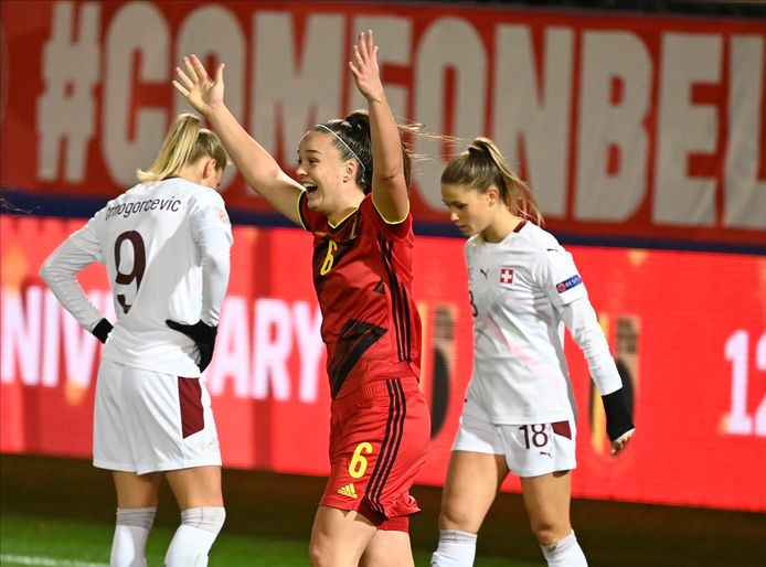 De Belgen versloegen de Roemenen met 6-1 in hun eerste officiële wedstrijd in vijf maanden. Dit is geen ramp maar. De Red Flames zullen op dinsdag 22 september 19 uur als leiders naar Zwitserland afreizen voor de zesde wedstrijd van hun kwalificatiecampagne voor Euro 2022.